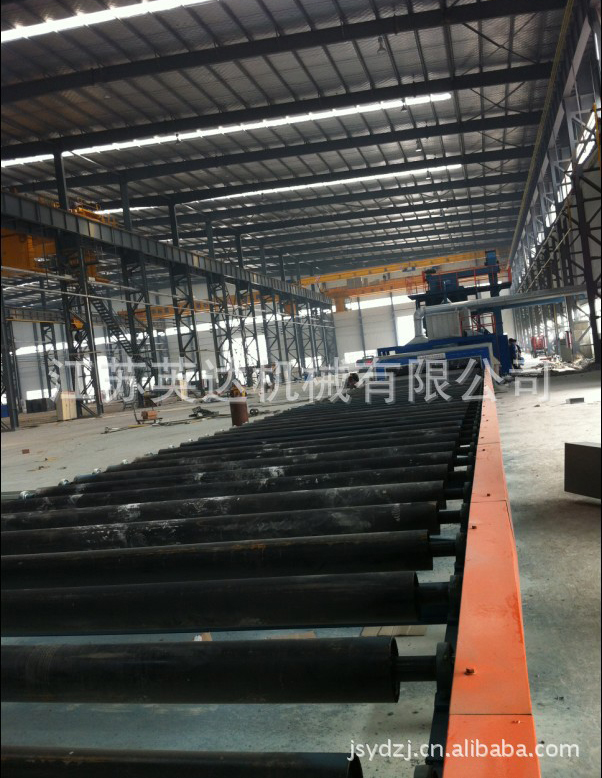 本鋼材預(yù)處理是在國內(nèi)外同類產(chǎn)品的基礎(chǔ)上,開發(fā)的機(jī)電一體化的新產(chǎn)品,整條流水線采用進(jìn)口工業(yè)PLC機(jī)控制,實(shí)現(xiàn)了從上料→送進(jìn)→拋丸清理→清掃→噴漆→烘干→送出全過程自動化(并可以自動和手動進(jìn)行切換),操作方便自如,是目前對鋼板、型材、結(jié)構(gòu)件進(jìn)行表面除銹、除焊渣去應(yīng)力、噴漆、等預(yù)處理的理想的自動化成套設(shè)備。