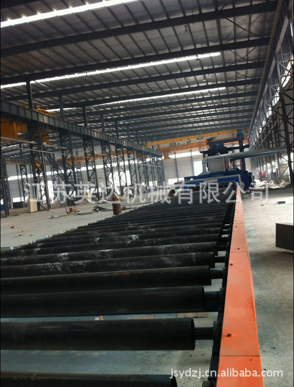 鋼板預(yù)處理線也稱鋼材預(yù)處理線是指鋼材在加工前(即原材料狀態(tài))進行表面拋丸除銹并涂上一層保護底漆的加工工藝。鋼材經(jīng)過預(yù)處理可以提高機械產(chǎn)品和金屬構(gòu)件的抗腐蝕能力,提高鋼板的抗疲勞性能,延長其使用壽命;同時還可以優(yōu)化鋼材表面工藝制作狀態(tài),有利于數(shù)控切割機下料和精密落料。此外,由于鋼材在加工前其形狀比較規(guī)則,有利于機械除銹和自動化噴漆,因此采用鋼材預(yù)處理可大大提高清理工作的效率,減輕清理工作的勞動強度和對環(huán)境的污染。